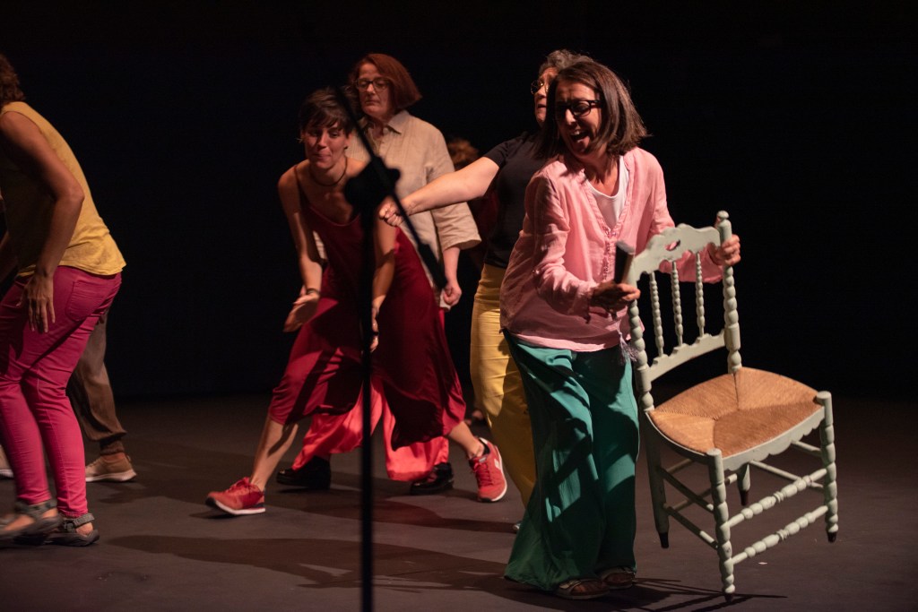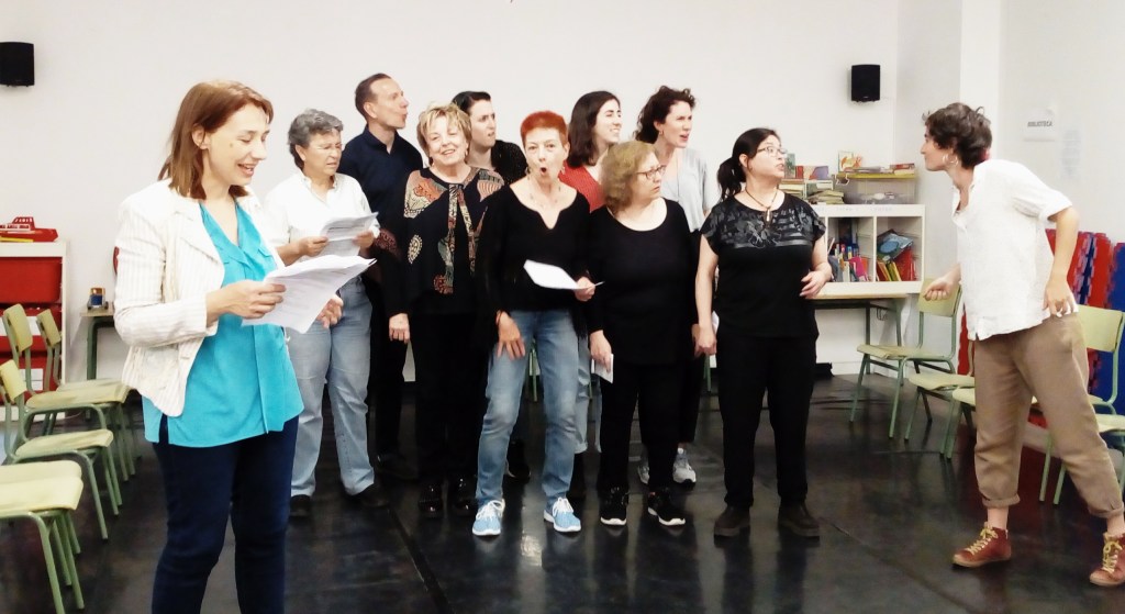 El grupo de Teatro Comunitario de Mosaicos Chamberí lo forman entre diez y quince personas, de diversas edades, entre los veinte y los setenta años. Es un grupo intergeneracional y heterogéneo. Unas nacieron y han vivido toda su vida en Chamberí. Otras se criaron aquí pero ahora viven en otros barrios. Las hay que llegaron hace muchos años, ya sea del barrio de al lado, de un pueblo o de muy lejos. Algunas llegaron hace poco y quieren conocerlo mejor. Otras quieren conocer gente nueva. Otras vienen de otras zonas de Madrid porque les gusta el proyecto y el grupo. Algunas llevan haciendo teatro años, y otras empiezan por primera vez. Nos gusta esta diversidad de miradas y experiencias, y estamos abiertas a seguir creciendo.